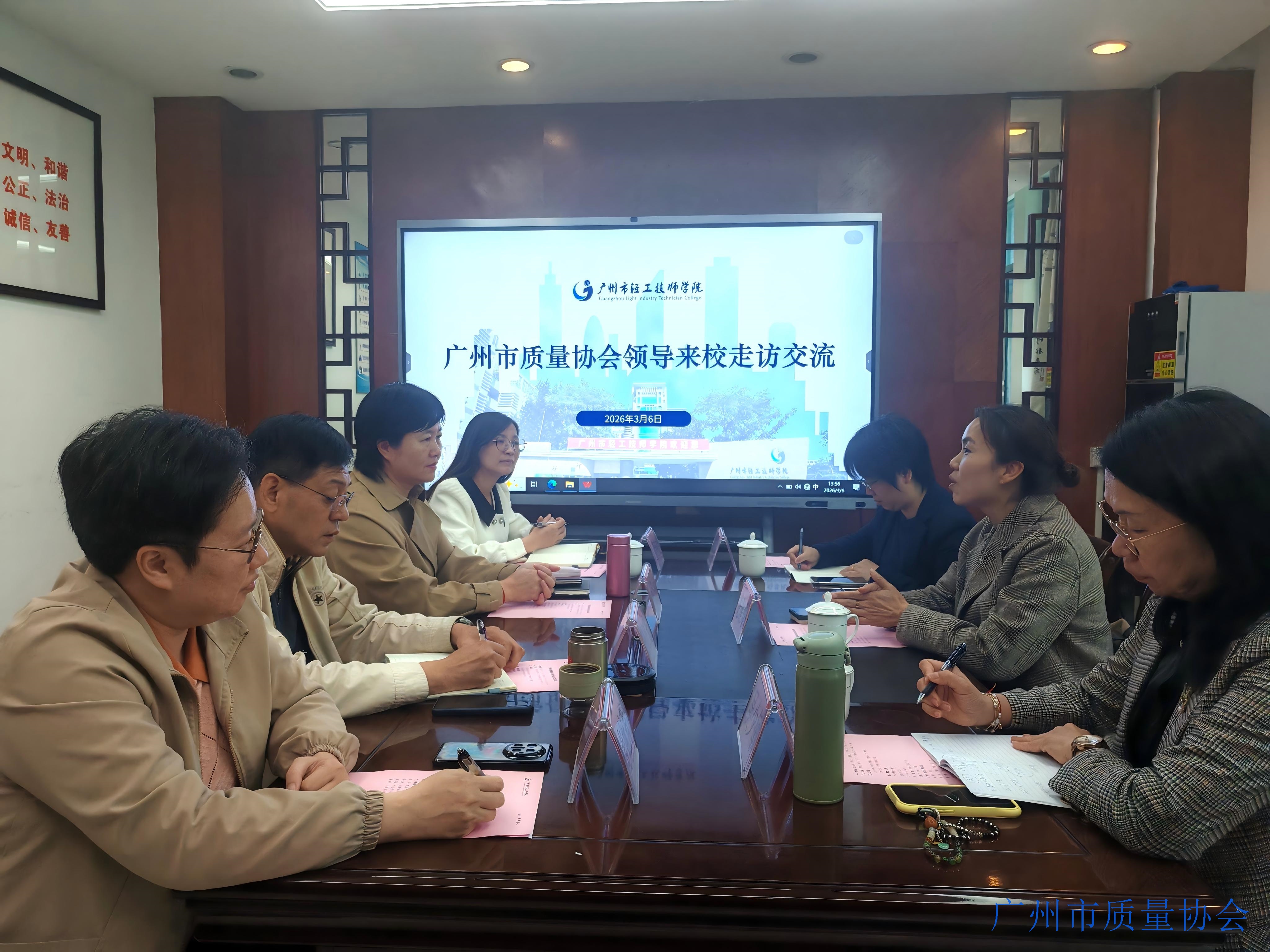 广州质协相关负责人在交流中表示:“广州市轻工技师学院不仅是技能人才的培育摇篮,更是质量文化建设的行业典范。学院将质量管理融入教学实践的做法,与协会践行‘质量强国’的核心理念高度契合、同频共振。”交流期间,双方还围绕新质生产力背景下技能人才质量素养提升、校企联合质量攻关、质量标准共建等关键议题深入交换意见,为后续全方位深化合作筑牢基础。